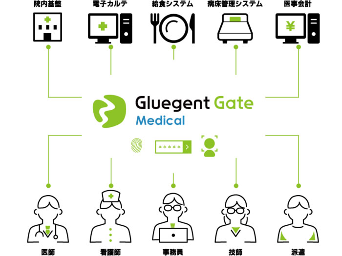 “Gluegent Gate Medical” یک سیستم مدیریت شناسه مبتنی بر ابر (IDAAS) با هدف صنعت پزشکی است ، که در آن اقدامات امنیتی سیستم به یک مسئله مهم تبدیل می شود ، زیرا بیمارستان ها در حال هدف قرار دادن حملات سایبری هستند و نشت اطلاعات به جانشینی مسائل تبدیل می شود. احراز هویت چند عاملی و محدودیت زمانی را می توان به راحتی برای دسترسی به سیستم های اطلاعات پزشکی مانند سوابق پزشکی الکترونیکی معرفی کرد.